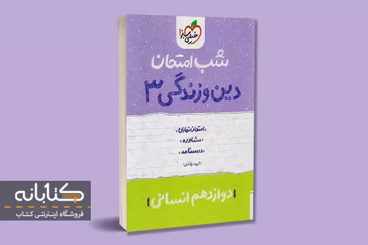 کتاب شب امتحان دین و زندگی 3 دوازدهم انسانی انتشارات خیلی سبز، ویژه ایام امتحانات به تحریر درآمده است و شامل دوازده آزمون می‌باشد. آزمون‌های این کتاب نمونه سوالات امتحانی به صورت طبقه بندی شده و طبقه بندی نشده، برای دو نیم سال مطرح شده اند. آزمون های طبقه بندی شده این فرصت را در اختیار دانش آموزان قرار می دهد که بتوانند در طول سال تحصیلی و یا پس از مطالعه هر درس سوالات مربوط به آن را بررسی کنند و با نمونه سوالات امتحانی دروس آشنا شوند.