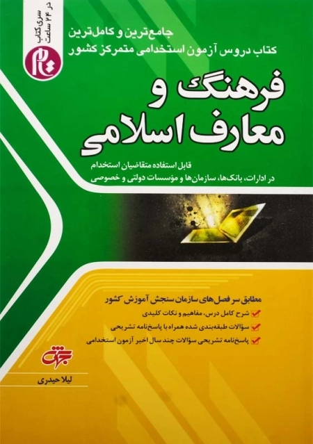 کتاب فرهنگ و معارف اسلامی شامل شرح دروس، مفاهیم و نکات کلیدی با سوالات طبقه بندی همراه با پاسخ‌های تشریحی آزمون استخدامی متمرکز کشور می‌باشد. آزمون‌های طبقه‌بندی شده در کتاب مطابق سر فصل‌های سازمان سنجش آموزش کشور می‌باشد.