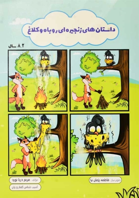 کتاب داستان های زنجیره ای روباه و کلاغ، از داستان کلاغ و روباه که در فارسی اول دبستان به آن اشاره شده، نشأت گرفته است و هر صفحه‌ی آن شامل چهار تصویر رنگی و مفهومی می‌باشد که داستان را بیان می‌کند. هر قصه در رابطه با کلاغی می‌باشد که یک قالب پنیر را به منقار گرفته و بر روی شاخه‌ی درختی نشسته است.