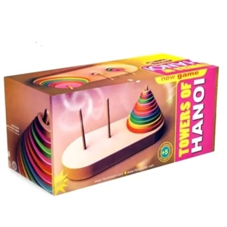 بازی فکری برج هانوی یک بازی آموزشی و سرگرم کننده است. هدف این بازی انتقال تمام حلقهها از میله نقطه a به میله c به کمک میله نقطه b است. حلقهها در بازی باید به ترتیب اندازه، یعنی از بزرگ به کوچک چیده شود. در این بازی مجاز هستید در هر حرکت فقط یک حلقه را جا به جا کنید. حلقههای کوچک میتوانند در میله خالی یا روی حقلههای بزرگتر قرار بگیرند، حواستان باشد نمیتوانید حلقههای بزرگ را روی حلقههای کوچک قرار دهید. بازی برج هانوی باعث تقویت خلاقیت در کودکان و افزایش تمرکز حواس و حل مسائل پیچیده میشود.
