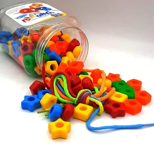 برای شروع می‌توانید از آسان‌ترین روش بازی استفاده کنید و از کودکتان بخواهید تا اشکال هندسی را از نخ همرنگ‌شان رد کند با این روش کودک شما نه تنها رنگ‌ها را می‌شناسد بلکه با اشکال هندسی که وارد نخ کرده است آشنا می‌شود. در قدم‌های بعد می‌تواند تمام اشکال یکسان را وارد نخ رنگ مورد نظر شما بکند و شما می‌توانید از او بخواهید تا این کار‌ها را بعد از آموزش شما انجام دهد تا با چالش نیز رو به رو شود و روند یادگیری موثری داشته باشد.
