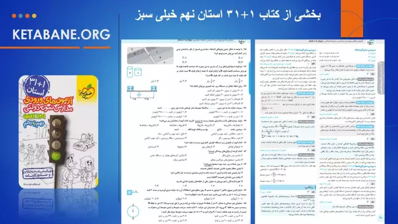 کتاب «31+1 استان: آزمونهای ورودی مدارس نمونه دولتی نهم به دهم» از انتشارات خیلی سبز یکی از منابع جامع و کاربردی برای دانشآموزان پایه نهم است که قصد شرکت در آزمونهای ورودی مدارس نمونه دولتی و تیزهوشان را دارند. این کتاب با پوشش کامل آزمونهای سالهای اخیر و ارائه پاسخنامههای تشریحی، به دانشآموزان کمک میکند تا آمادگی خود را برای این آزمونها افزایش دهند.