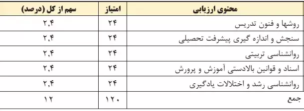 - هر فصل کتاب معمولاً شامل مباحث تخصصی رشتههای مورد آزمون است، مانند روانشناسی تربیتی، روشها و فنون تدریس، سنجش و اندازه گیری پیشرفت تحصیلی، اسناد و قوانین بالادستی.