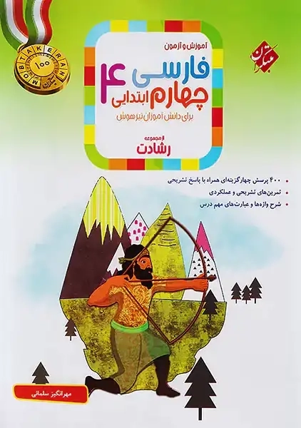 کتاب رشادت فارسی چهارم ابتدایی انتشارات مبتکران، یکی از بهترین کتاب های کمک درسی فارسی چهارم دبستان میباشد. کتاب رشادت فارسی چهارم ابتدایی مبتکران و با هدف تقویت مهارتهای چهارگانه زبان آموزشی (خواندن، نوشتن، سخن گفتن و گوش کردن) متناسب و مطابق با آخرین تغییرات کتاب درسی فارسی چهارم ابتدایی در هفده درس به تحریر درآمده است.
