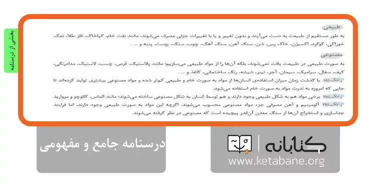 نکات کلیدی و فراتر از کتاب درسی نیز در درسنامهها گنجانده شدهاند.