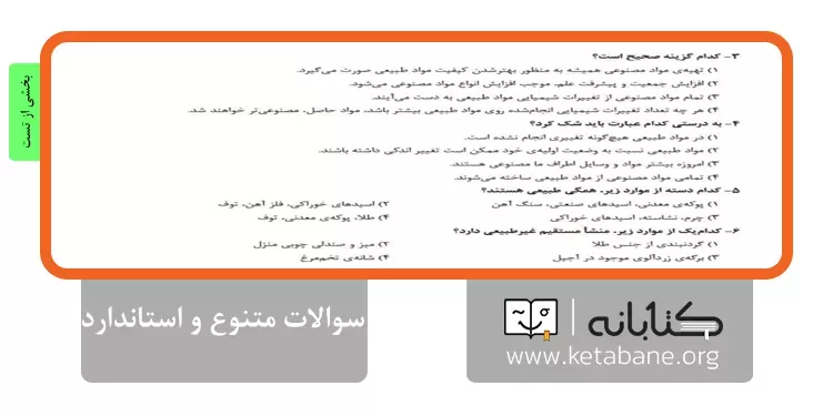 تمرینهای تحلیلی و آزمایشهای علمی: علاوه بر سوالات تستی، تمرینهایی برای درک بهتر مفاهیم علمی و آزمایشهای ساده علمی نیز در کتاب گنجانده شده است.